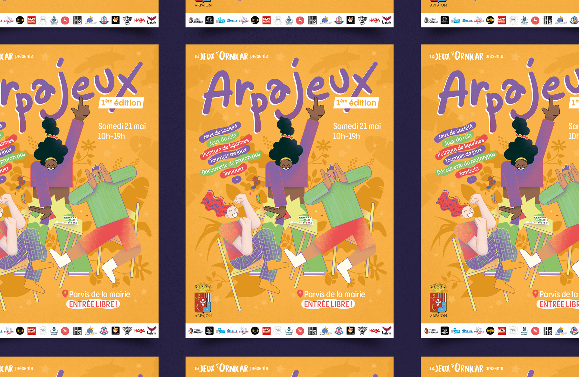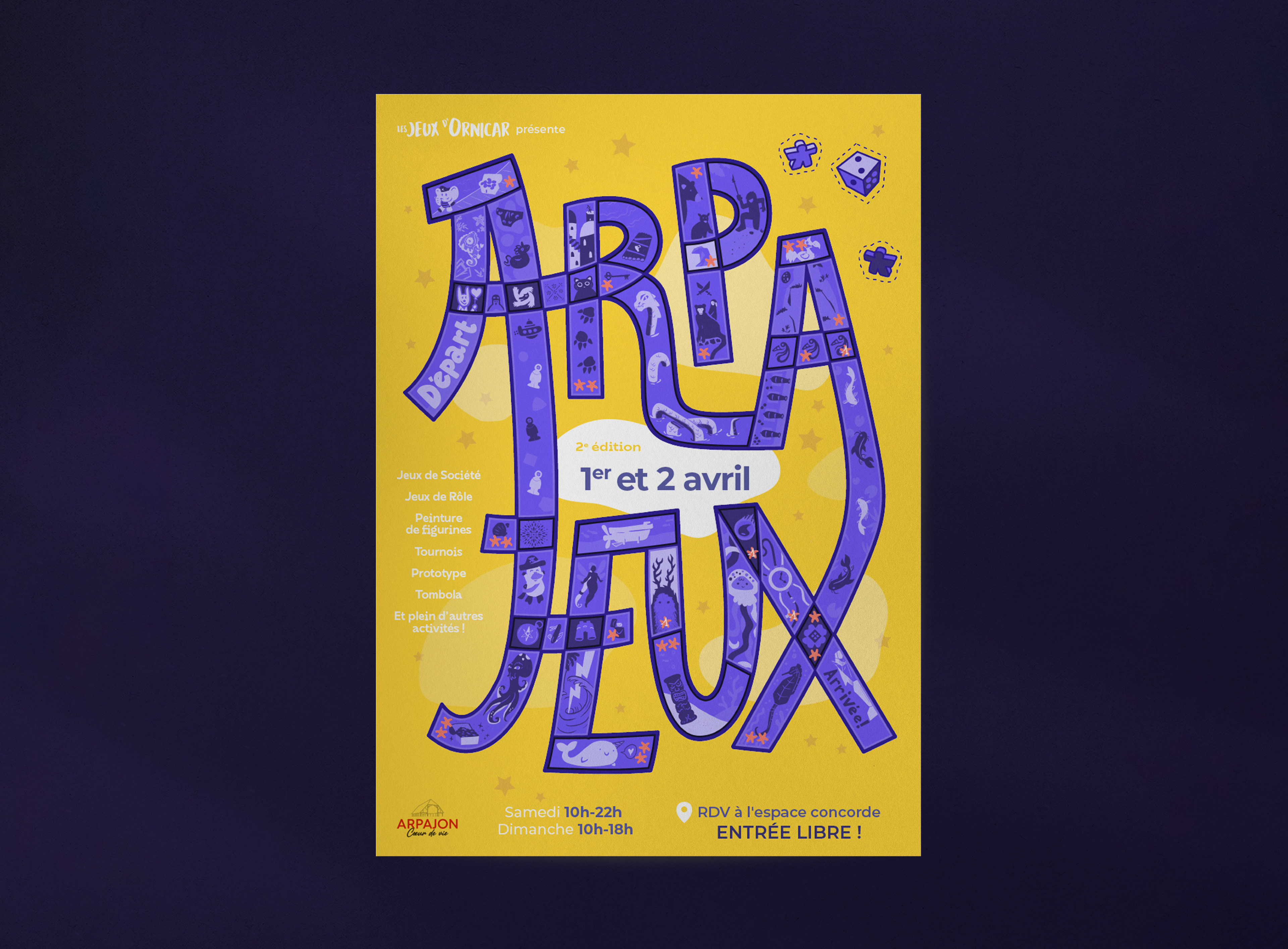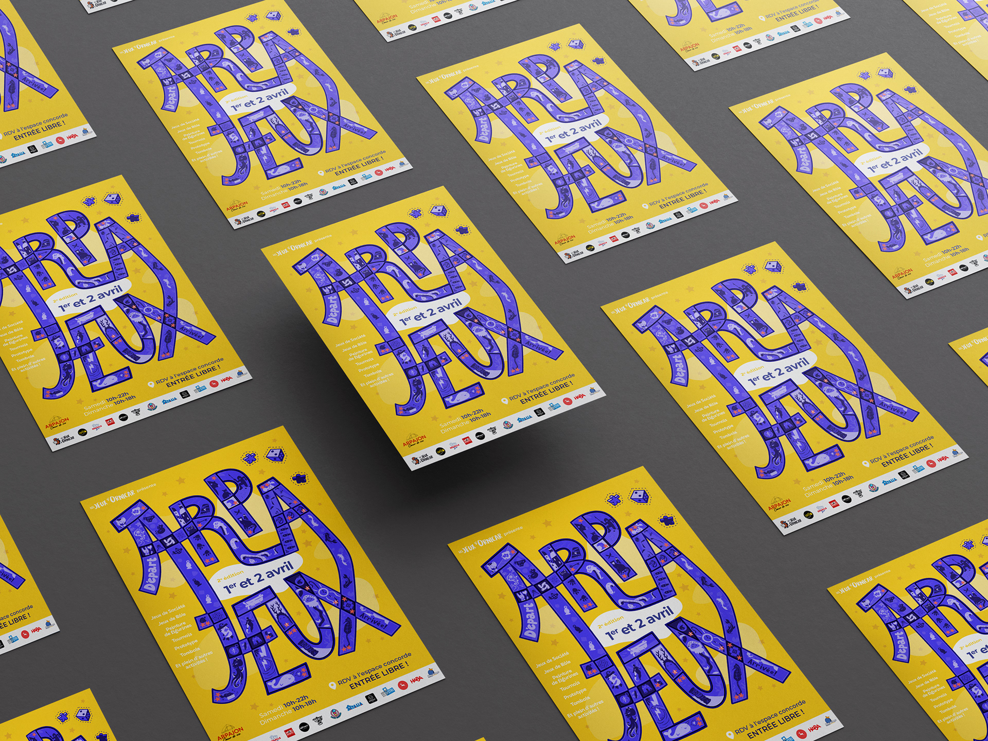 Affiches pour le festival de jeux de société Arpajeux.